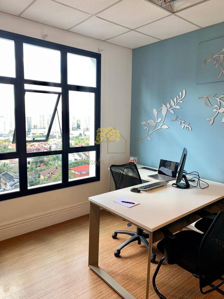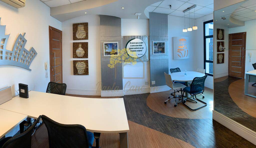 Sala comercial de 41 m² com 1 lavabo pronta para uso totalmente mobiliadaem andar alto com vista permanente e 1 vaga de garagem.